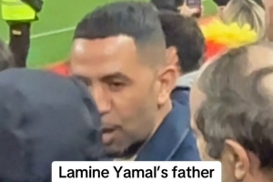 亚马尔的父亲穆尼尔现场观看了这场比赛,网友晒出了他观赛的视频,当亚马尔罚丢点球的时候,穆尼尔回过头面带笑容。